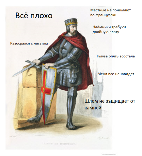 Автор: Михаил ЕрошкинВ своё время мне попался на глаза знаменитый картиночный мем "всё плохо" на средневековую тему (кажется, даже разные версии попадались), и я, в рамках своих историко-средневековых увлечений тоже сделал такую картинку.