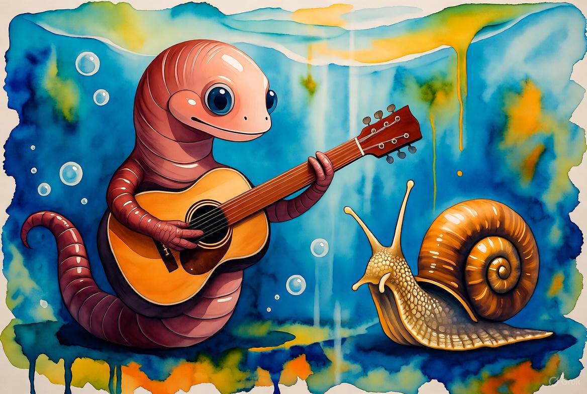 Вот поющий с улиткой червячок для другой песни. Там еще у меня рыбы летают… и всякое.