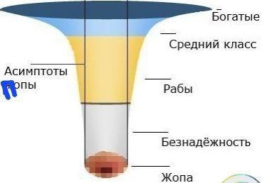 Общество устроено так, что у воронки стенки не прямые, а изогнутые, как график квадратичной функции. Что это даёт? А то, что чем ближе к попе, тем с большей скоростью нужно вращаться шарику, чтобы хотя бы не падать вниз. А чем ближе к верхнему краю, тем меньшие усилия дают больший результат. Чем ближе к попе, тем тщетнее все попытки из неё выбраться.