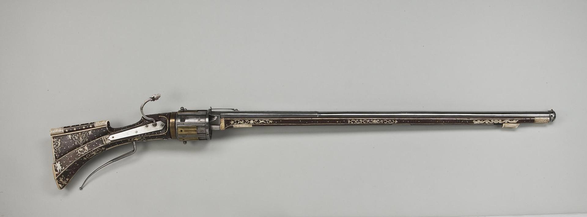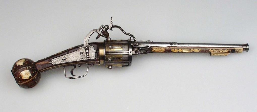 Револьверы и револьверные карабины, причем фитильные, по некоторым сведениям тоже успели придумать, правда совсем незадолго до появления ГГ, где-то примерно в районе 1540-х годов, возможно чуть раньше...
