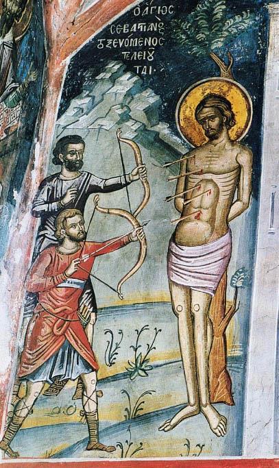 После первого раза его вылечила вдова Ирина, ставшая позднее святой. Про эту первую казнь знают все — св. Себастьян был расстрелян (буквально, а не в переносном смысле — в него выпускали стрелы). А вот о том, что было потом, вспоминают гораздо реже — наверное, потому что это неприятно.