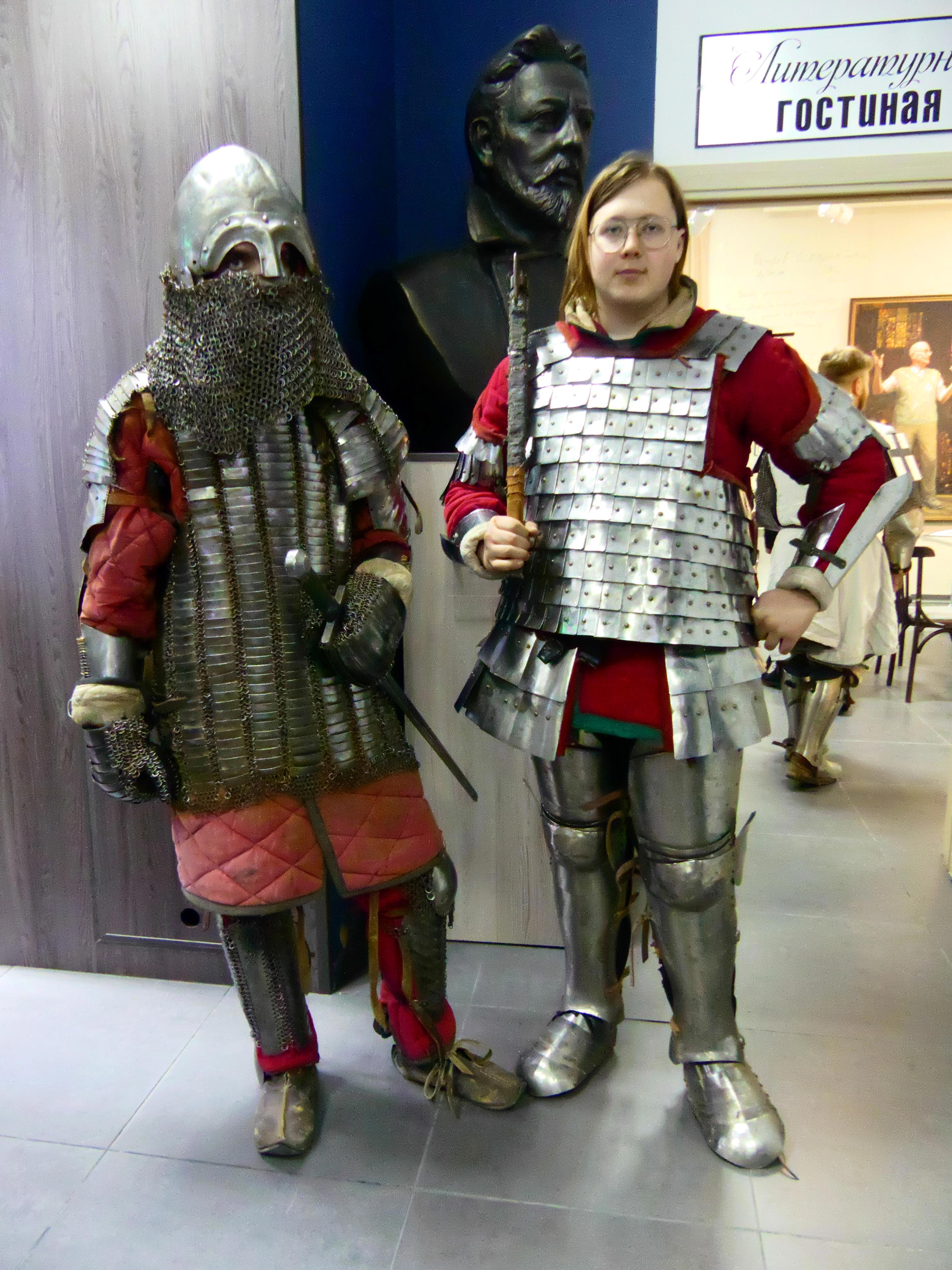 Все желающие могут облачиться в доспехи и - вперед, по музею!)