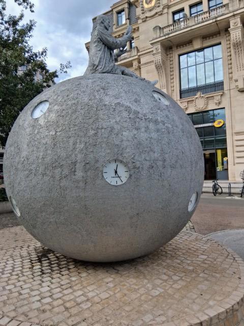 площадь Гранжье, счетчик времени. Площадь названа в честь супругов Гранжье, которые отдали свои накопления и коллекции городу.