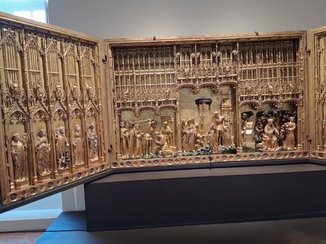 Резной деревянный и позолоченный алтарь. Великолепная кропотливая работа средневековых мастеров, рассказывающая историю Христа.
