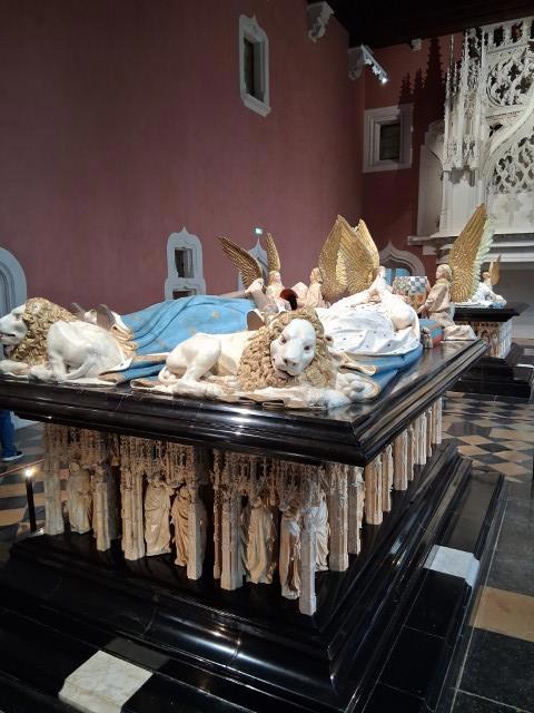 Этот изящно вырезанный фрагмент из гробницы Иоанна Бесстрашного и Маргариты Баварской, герцога и герцогини Бургундских, в Дижоне. В основании гробницы изображены скорбящие. Иоанн Бесстрашный, герцог Бургундский, был убит на мосту в Монтеро в 1419 году во время переговоров с французским дофином (будущим королем Франции Карлом VII) ближайшими советниками дофина. Маргарита Баварская умерла через четыре года.