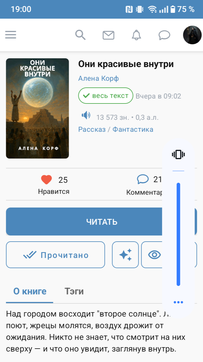 Автор: Кирилл СуворовПродолжаем замечательный флэшмоб. Единым махом прочел очень интересный рассказ. Необычный и красивый. https://author.today/work/503653