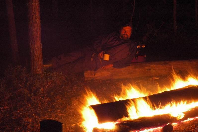 Ну как после такого не погреться вечером у нодьи? Обязательно надо.