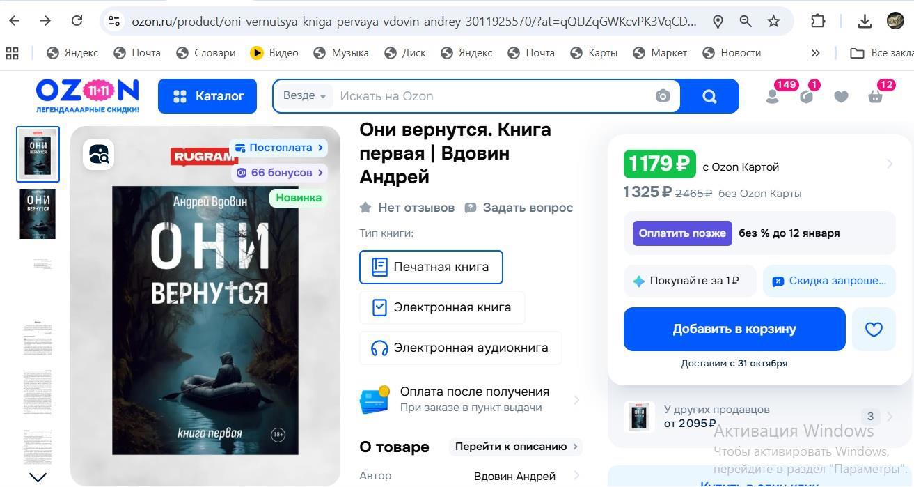 Увы, предзаказ отныне недоступен. Но приобрести книги выгоднее всего по-прежнему через Telegram-канал «К слову». Но там есть один минус — платная доставка. Поэтому если вы не житель Москвы, то лучше все-таки воспользоваться старым добрым «Озоном», где цена не намного выше, особенно если платить Ozon-картой.