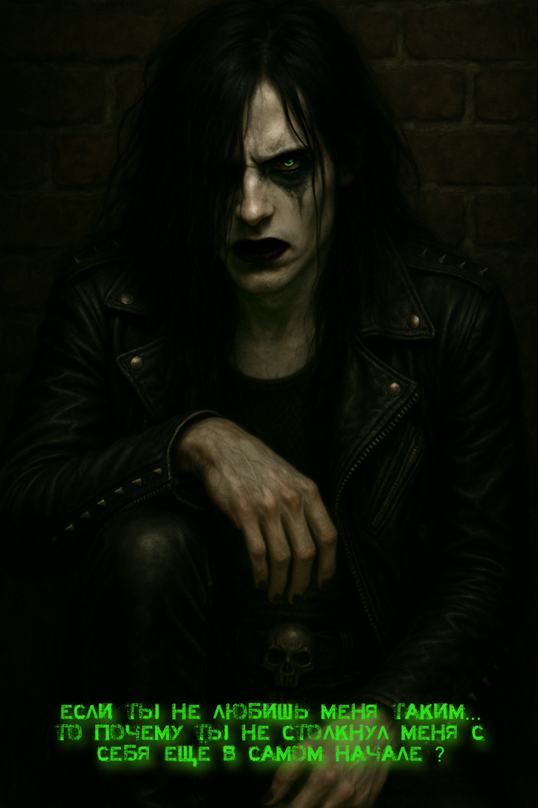 А визуально внутреннее расколотое и болезненное состояние Мистера Рока отобразил бессменный ChatGPT.