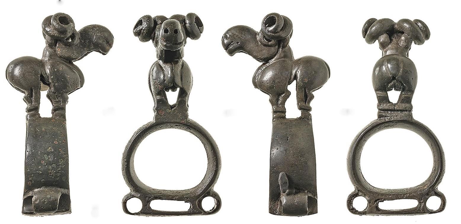 Однако на самом деле мы не знаем, жертвы это были, или нет. Мы не знаем, когда и при каких обстоятельствах эти кости вообще там появились. Кстати, вернёмся к нашим, то есть скифским, бронзовым баранам. Раз эти изделия нашли не в кургане, а на поверхности, то вообще неправомерно связывать их с самим захоронением… хрен его знает, кто и когда их там мог потерять. «Скифский стиль»? Да кто бы спорил… но эти люди жили на этой земле очень долго. Так что эта непонятная штуковина с фигуркой барана могла там оказаться просто случайно. Сами археологи сделали осторожное предположение о том, что странные бараны были деталями колесниц, которые когда-то были установлены на кургане. Предположение прям совсем осторожное… никакой картинки, поясняющей их место в колеснице, они не показали. Поэтому – фигня, а не версия, хотя шанс есть.