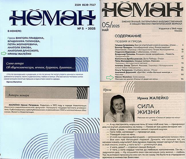 Был опубликован в журнал «Нёман» №5 май 2025 год, г. Минск, РБ. Литературно-художественный и общественно-публицистический журнал Союза писателей Беларуси.