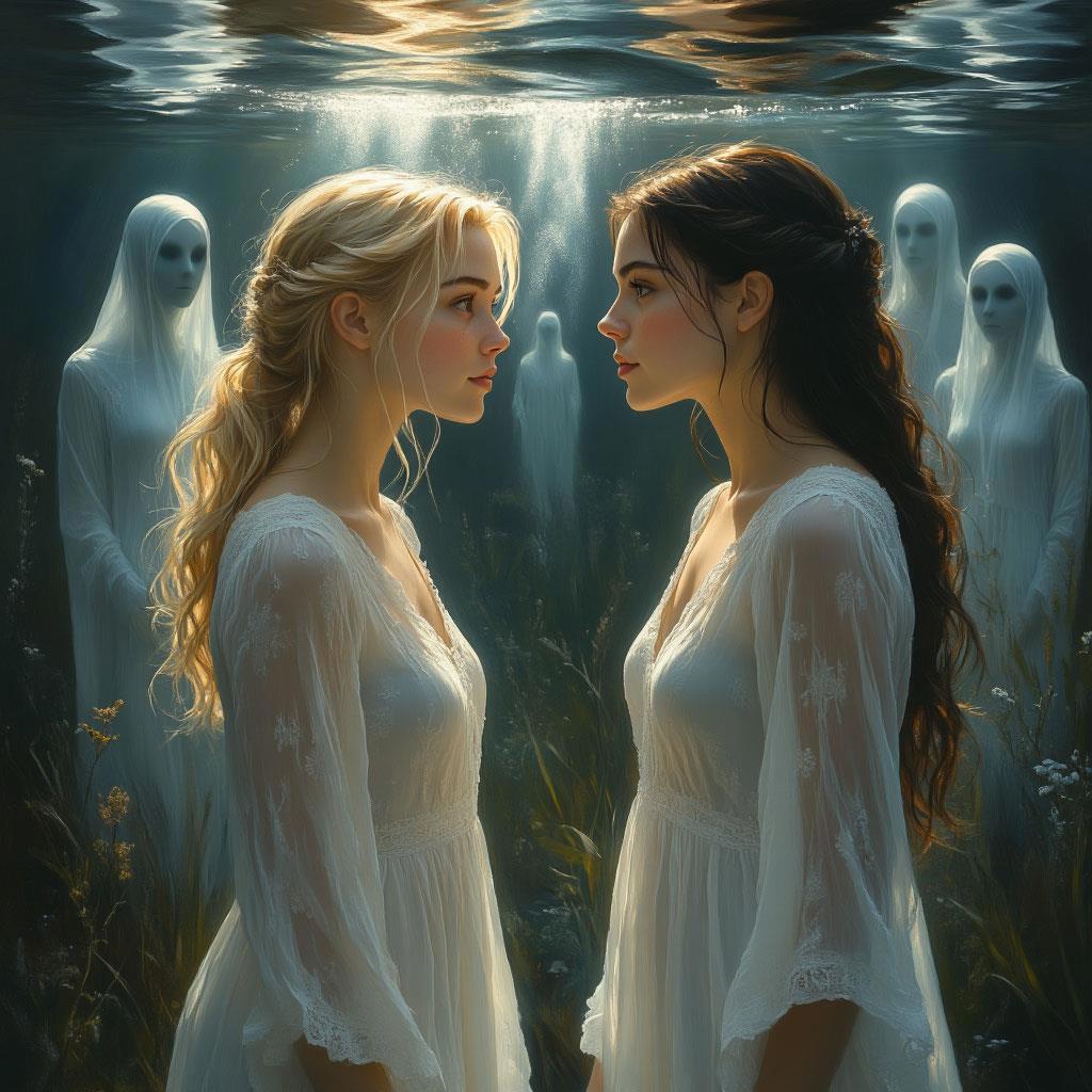 Они все здесь были общего племени — в конце концов, их объединяла одна водяная могила и один вечный, неутолимый голод по утраченному солнцу, по теплу, по простым человеческим прикосновениям. Но, как пойманные светляки, запертые в одной банке, каждая несла свой огонёк личной боли в абсолютном, непроницаемом одиночестве.