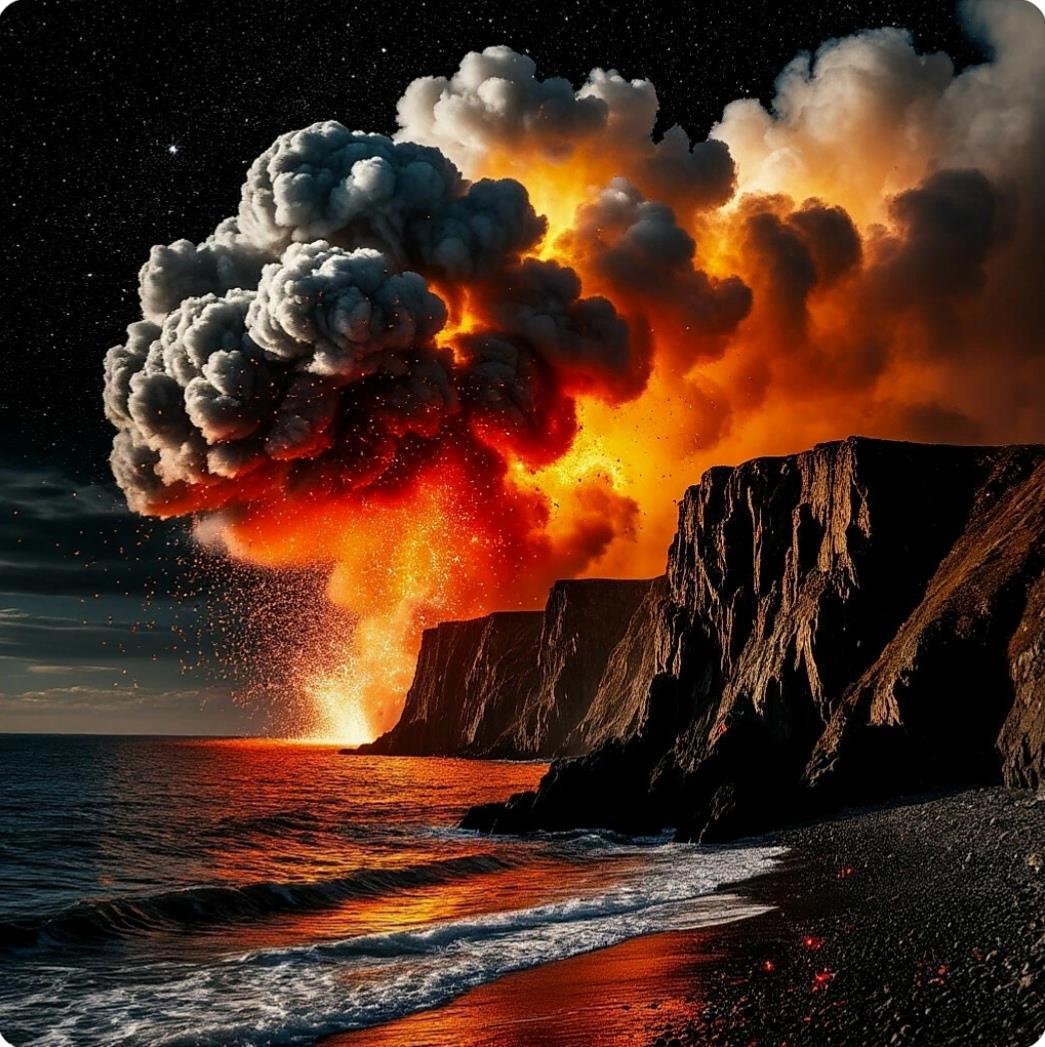 Борясь со шквалом и захлестывающими волнами ватажники оставшиеся при ладьях, с ужасом увидели вставшее над гребнем берега Ларгоха страшное оранжево–дымное облако и перед ним на обрыве громадный косо наклоненный огненный диск в сотни локтей высоты.