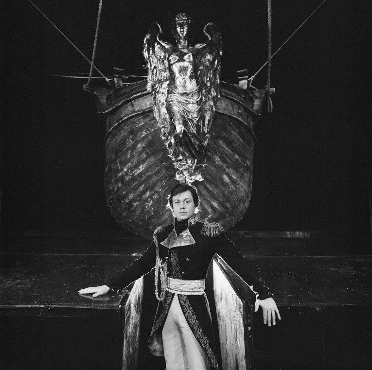 Детально тот июльский день вспомнить трудно. То ли был день сдачи, когда власти принимали спектакль, то ли первый показ, но в памяти остался невероятный колотун, а от него полная прострация. Там перед моим выходом сначала появляется «еретик», которого играл тогда Саша Абдулов, и он кричит: «Граф Николай Петрович Резанов!» Абдулов поворачивается спиной к зрительному залу и указующим перстом тычет наверх, где появляется фигура графа. Я становлюсь в эту графьевую позу, меня ослепляет свет, и я чувствую, что правая коленка у меня ходит в амплитуде где-то сантиметров десять. Она гуляет, а я вроде нормально стою, вроде ничего, не падаю.