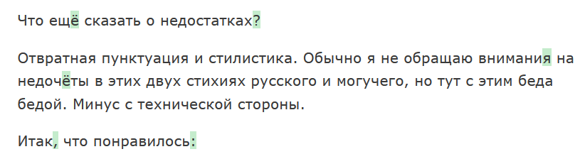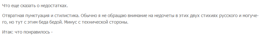 «Отвратительная пунктуация и стилистика. Обычно я не обращаю внимания на недочёты в этих двух стихиях русского и могучего, но тут с этим беда-бедой».
