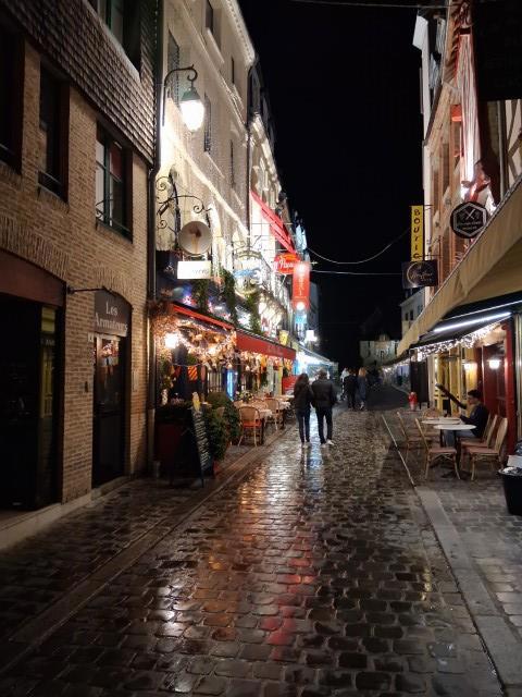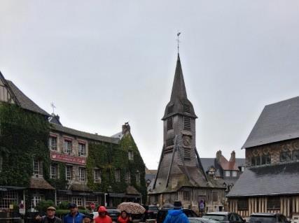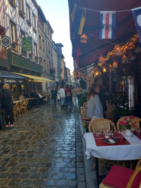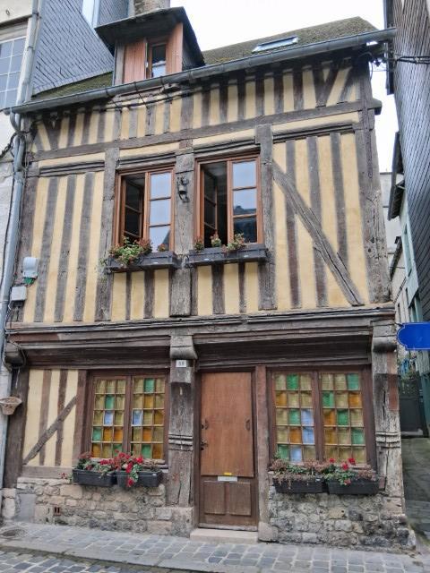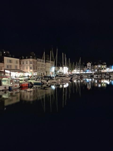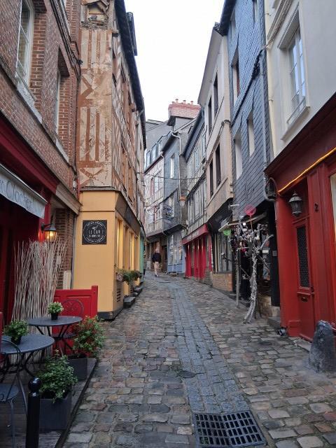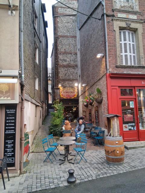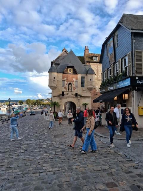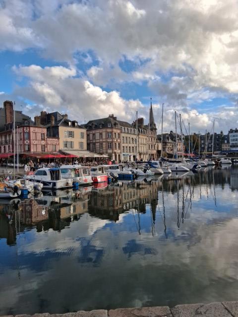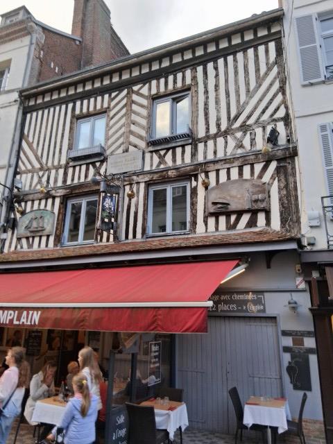 Мы писали тогда: "Гавр был включён в наш маршрут из-за своей известности - только и слышно: "Прибыли в Гавр", "Отплыли из Гавра". Эта известность сослужила нам плохую службу. Мы приехали в гостиницу в Гавре, бросили вещи и пошли прогуляться. Какое разочарование! Нечего смотреть, и неудивительно - в войну Гавр сильно бомбили союзники (последнее слово обычно пропускается, чтобы непонятно было, кто бомбил), никакой ночной жизни, вообще НИЧЕГО! Мы старались поддержать друг друга, приговаривая: "Ну и что, посмотрим, как живёт рабочий город-порт" и другие жалкие слова. Однако настроение упало. Что мы будем делать два дня в этой дыре? Но, послушайте, что делают в ней все эти сонмища японских, китайских и других туристов, которые заполонили наш отель? Спрашиваем у портье: "Что интересного можно посмотреть в Гавре?" Он как-то вяло мямлит в ответ - порт, может быть". А что тут все эти туристы будут делать? О, они только ночуют в Гавре, а днём отправляются по Нормандии. В Гавре гостиница вдвое-втрое дешевле." "О-о", - сказали мы, и помчались с утра по всем этим местам - Этрета, Онфлёр. Надо сказать, что больше мы о приезде в Гавр не жалели." Таким образом мы в Онфлёре в гостинице тогда не останавливались, хотя материально могли себе позволить, но провели в городе почти день. В этот же раз мы выбрали гостиницу в самом центре старого города, при этом внутри всё было новенькое, современное и стильное.