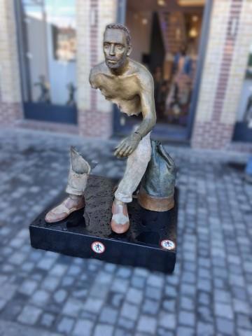Это скульптура французского художника Бруно Каталано. Она входит в серию «Путешественники» (Les Voyageurs), изображающую людей с отсутствующими значительными частями тела. Скульптуры вдохновлены личным опытом Каталано как моряка и его кочевым образом жизни. Отсутствующие части скульптур призваны символизировать чувство, когда оставляешь часть себя позади.