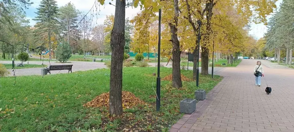Листву желтую собрали в аккуратные кучки, а трава опять зеленая!