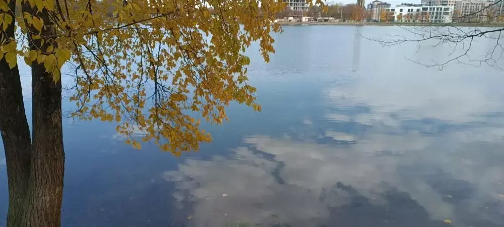 Посмотрите какое потрясающее небо и облака, которые отражаются в озере. Сразу вспоминается песня: