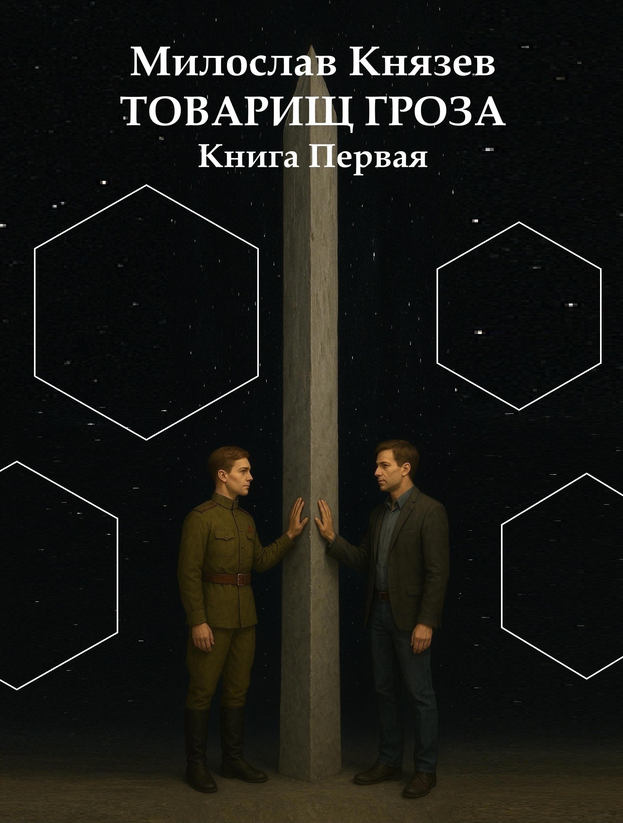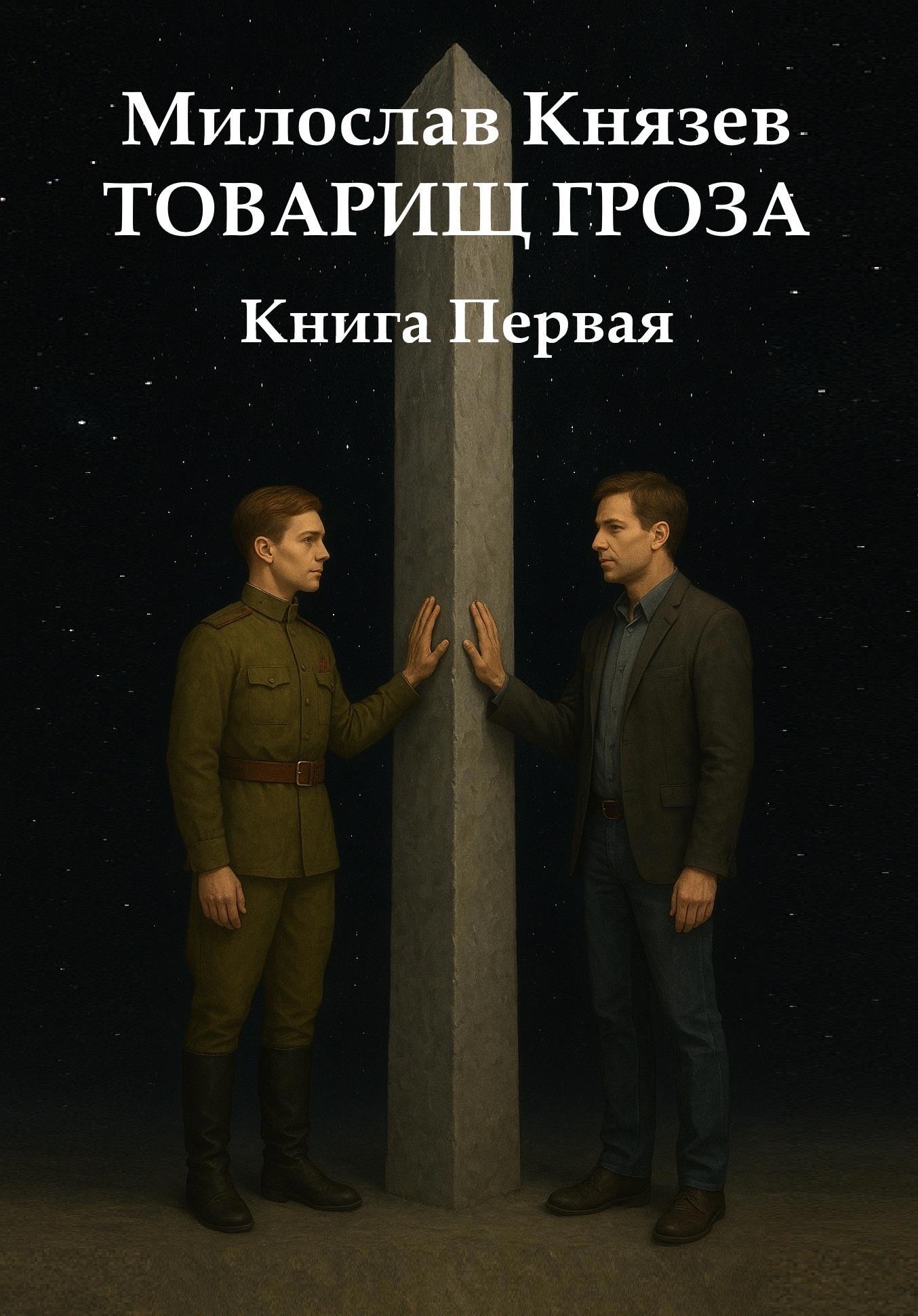 Автор: Милослав Князев Первый — с самого начала и был первым, просто он мне тогда показался слишком простым. Начал выдумывать всякие сложности из-за которых ничего хорошего и не вышло. Как только вернулся к нему, удалось сгенерировать буквально с третьей попытки. Правда долго ругался с нейросетью, она почему-то категорически не желала делать столб выше человеческого роста и оставлять свободное место по краям. При этом на словах соглашалась и обещала, что именно так и будет. Несколько раз переспрашивла и ещё раз обещала. После чего делала опять не так. Но как только оставила самый минимум всё остальное я сам вытянул. Даже не с помощью фотошопа, которым пользоваться не умею, а самым обычным пейнтом. Эта обложка рассчитана на весь цикл, будет меняться только: Книга Первая… Книга Вторая… Книга Третья...