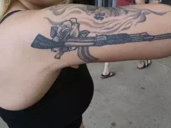 А как насчёт этой тату у моей молодой подруги? Кто-то называет её «Guns and Roses», другие видят там АК.