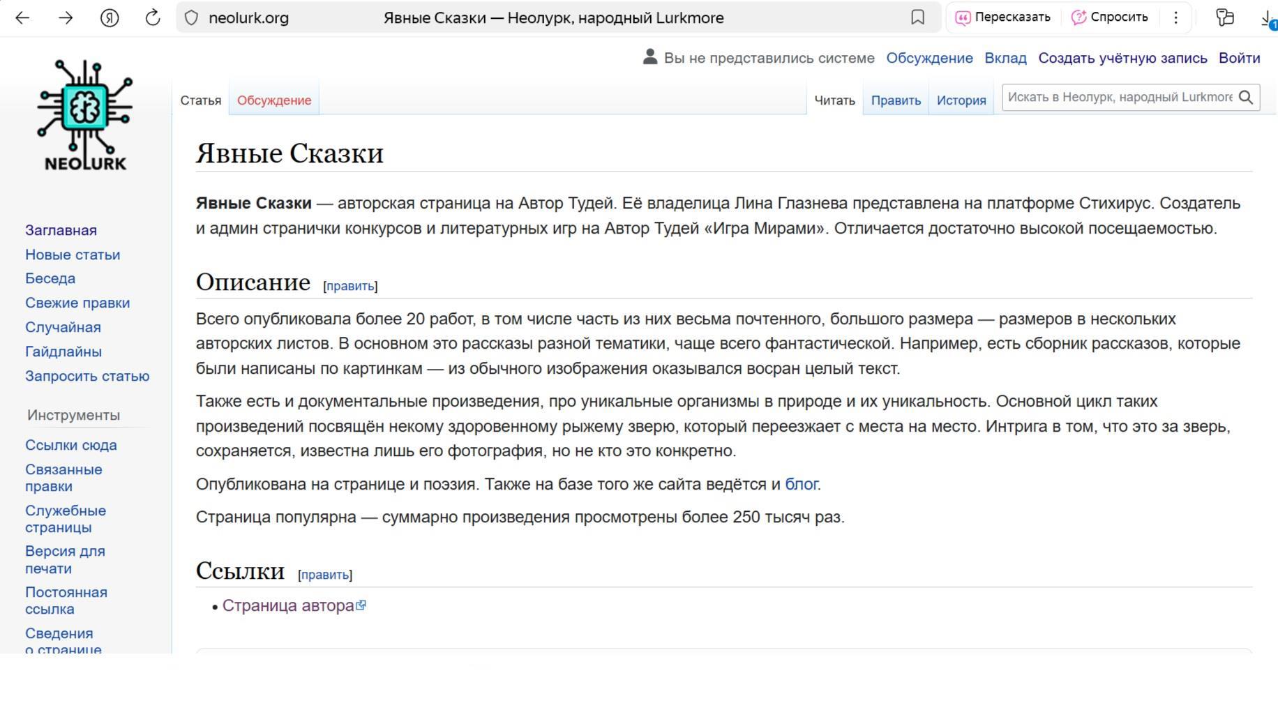 Автор... Ну ладно, про меня написали в Неолурк. Там я владелец страницы Явные Сказки и админ странички конкурсов и литературных игр "Игра Мирами" - вроде пара строк,