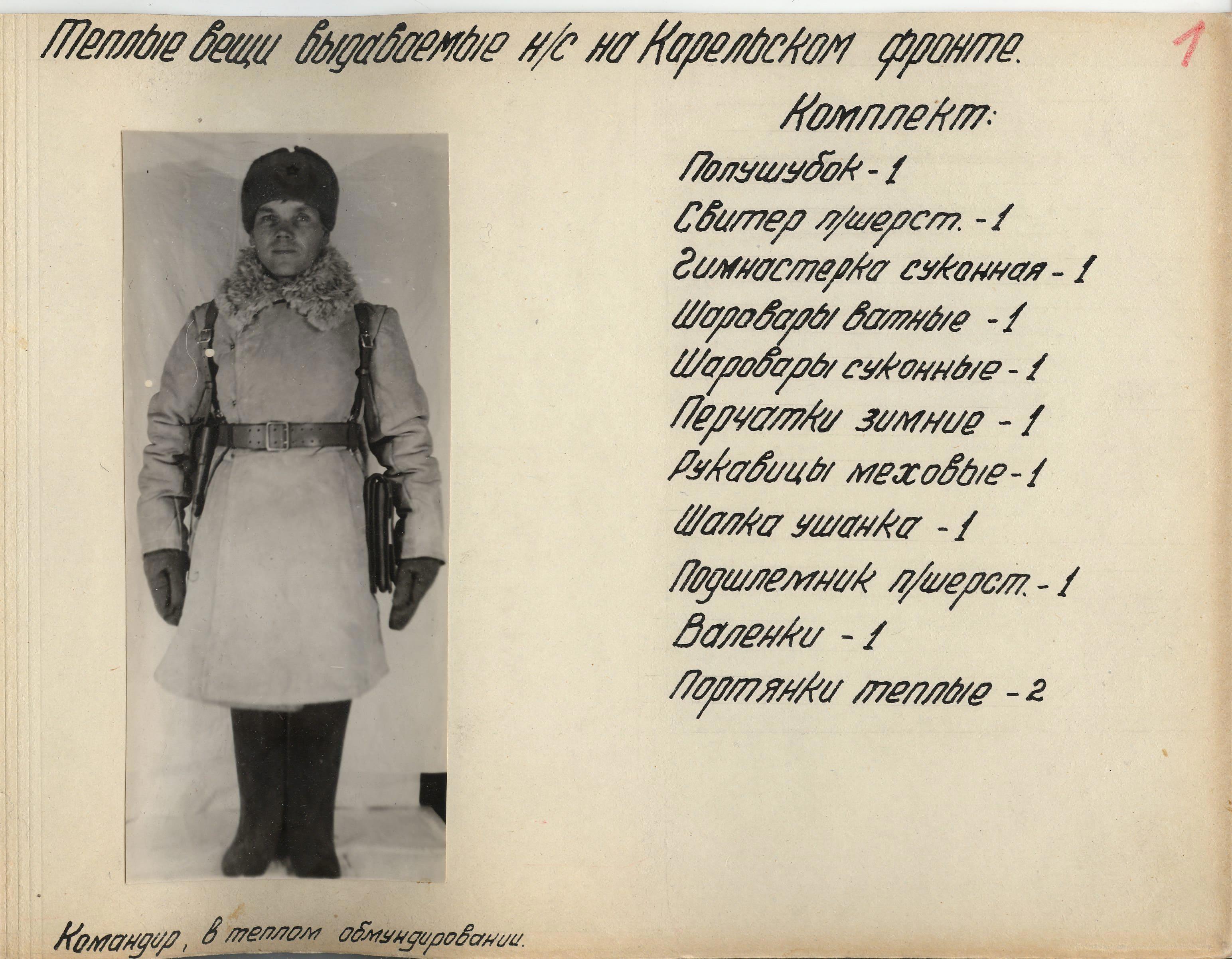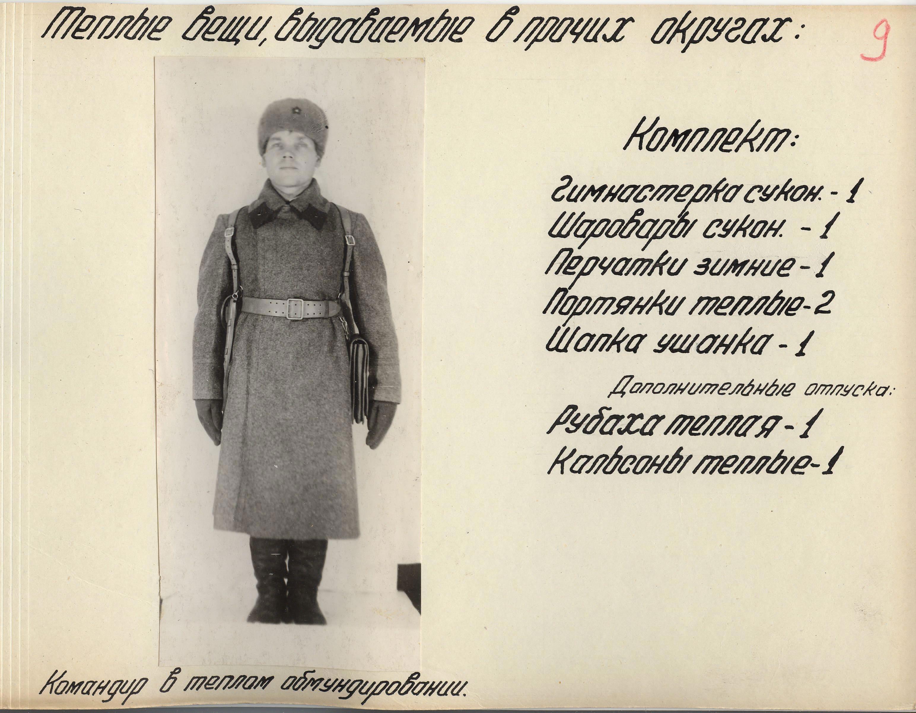 Как вы, уважаемые читатели, должно быть уже заметили, на последнем листе, в приложениях написано: «Нормы за № 1, 2, 3, 4 и 5 (копии с норм к настоящей копии постановления не снимались)». К счастью, благодаря помощи друзей, вы можете не просто прочитать нормы, а увидеть фотографии того, как это выглядело в реальности. Сохранился целый «Фотоальбом тёплых вещей Красной Армии»: