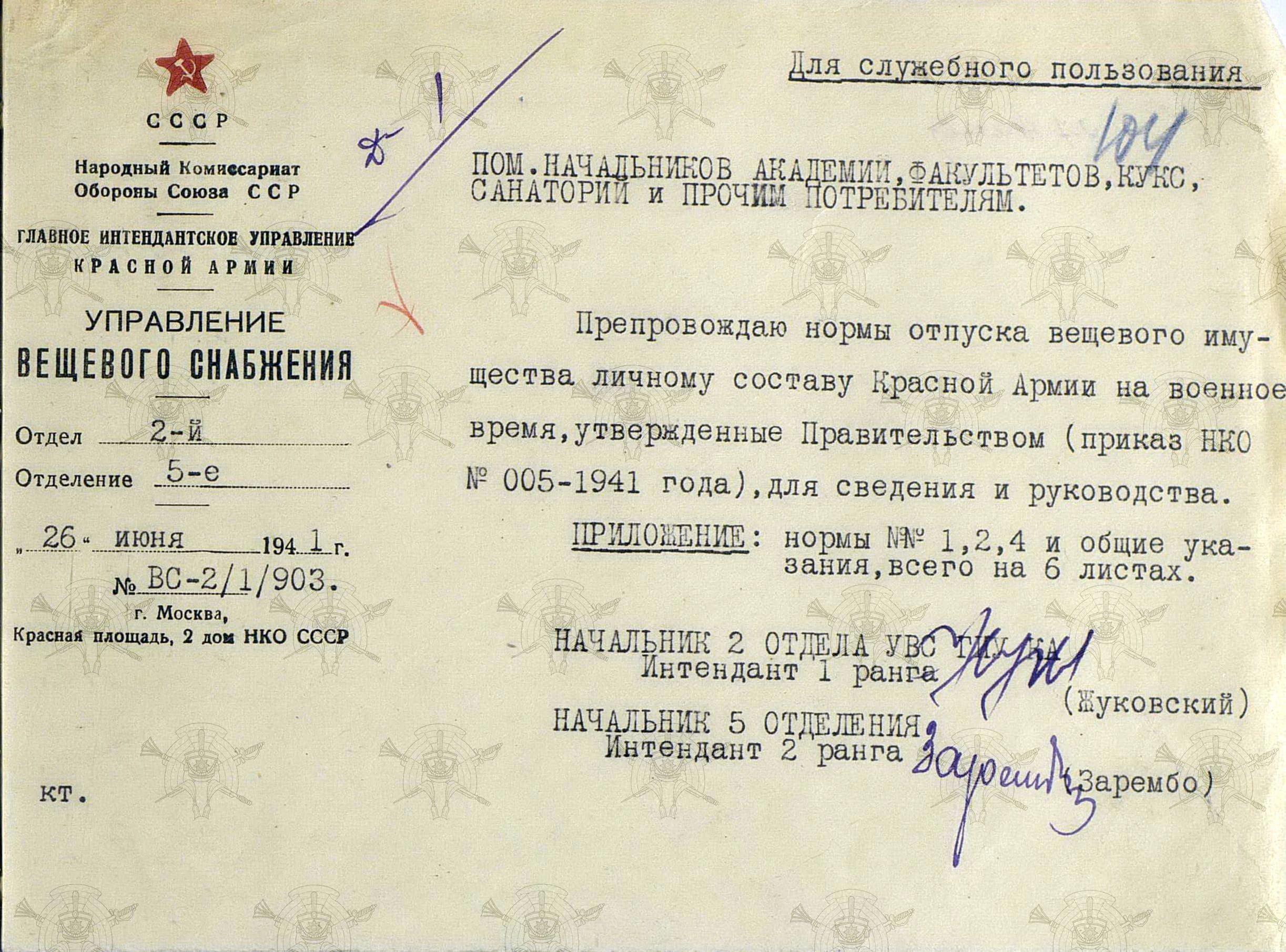 С одной стороны, есть постановление СНК СССР от 18 января 1941 г., приказ Наркома обороны № 005, наконец – циркуляр Главного Интенданта Красной Армии № 13 от 30 июня 1941 г. с объявлением «положения о вещевом снабжении Красной Армии в военное время». И во всех перечисленных нормативных документах есть нормы снабжения тёплыми вещами, бери и пользуйся. Ведь написано, что младший начальствующий и рядовой состав, курсанты ВУЗов КА, проходящие службу в жарком и умеренном климате, рубаху и кальсоны тёплые получать не должны, а полушубки и валенки вообще отпускаются по особому назначению Генштаба Красной Армии.