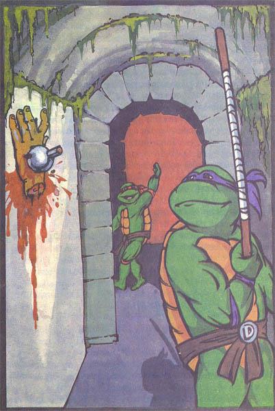 Автор: Шепельский ЕвгенийВ буйные 90-е умельцы из одного белорусского издательства наладили выпуск книг про черепашек-ниндзя, используя труд местных литературных негров. Литературные же негры использовали в качестве вдохновения голливудские блохбастеры, переписывая их сюжеты с участием пресловутых земноводных. Под раздачу попало великое множество фильмов (количество книг в серии шагнуло далеко за 30), включая "Хищника" и "Разрушителя". На иллюстрации же ниже явлен сюжет про высокого старца, его серебряные хищные сферы и злобных карликов, каковой совершенно, как бы это сказать, не подростковый. Именно эту книгу я бы почитал и ныне, ужасно интересно, что там наворотили на тему любимого с юности ужастика, только поди ее найди занедорого.