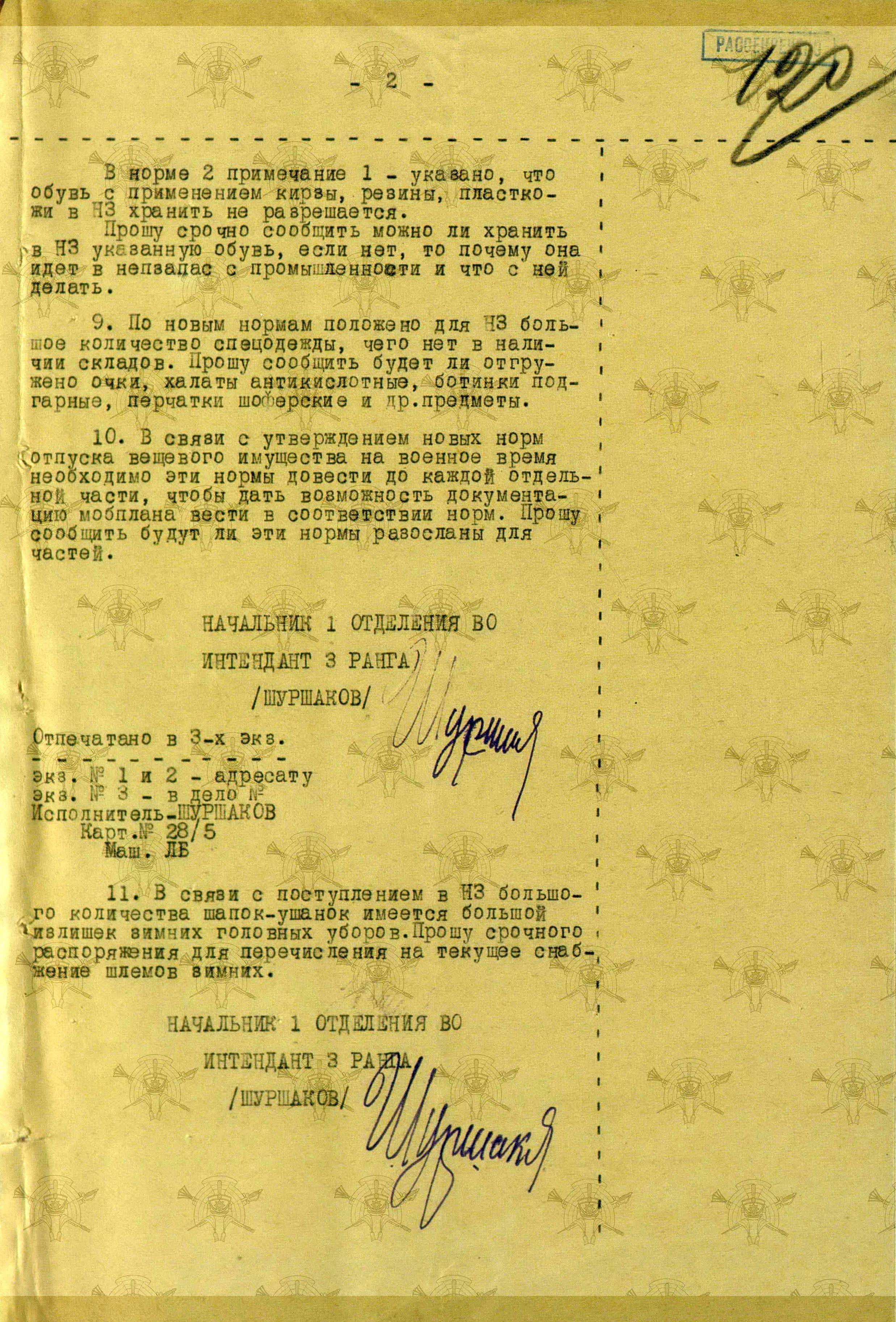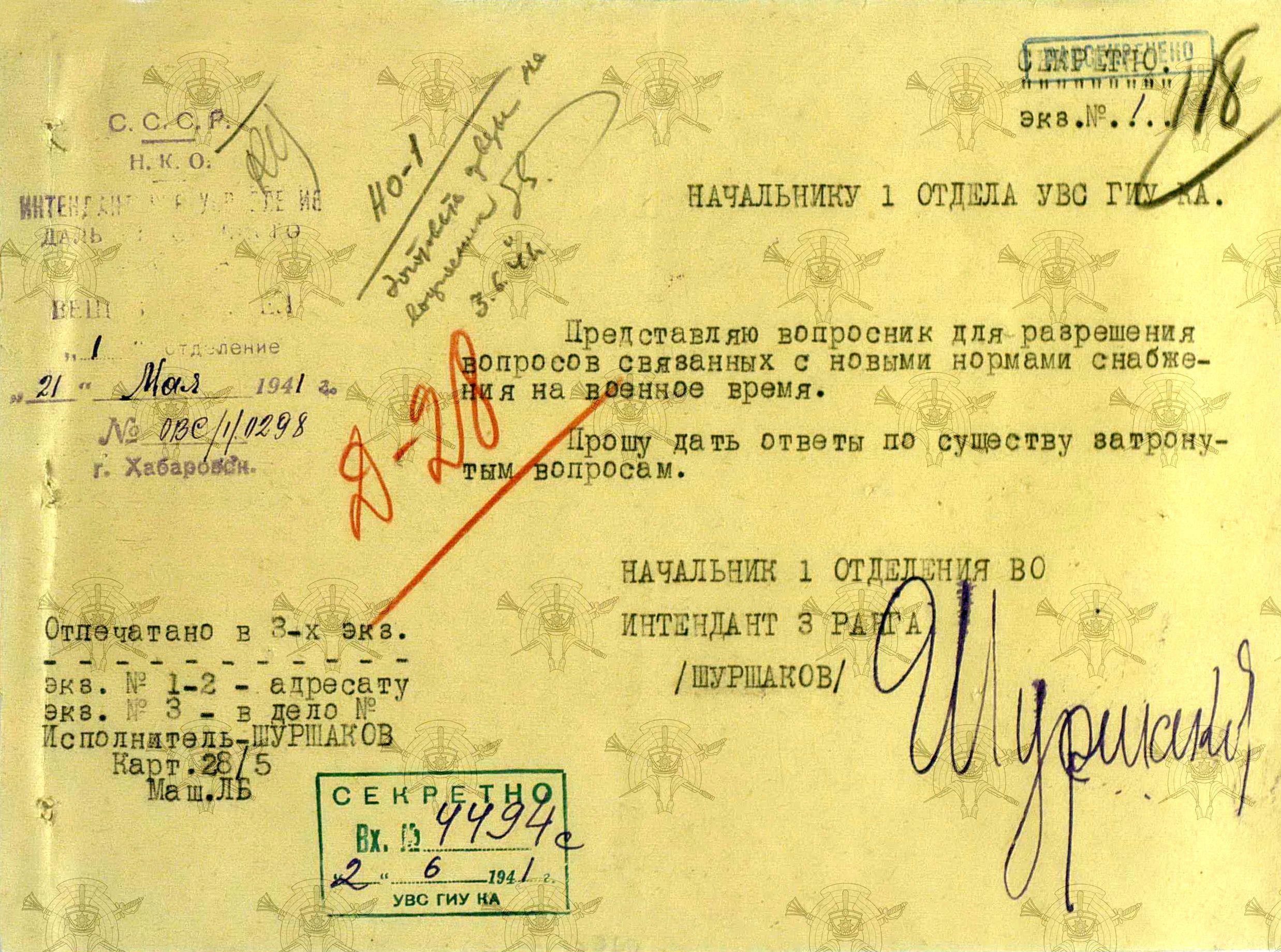 Ответ не заставил себя ждать. Оказалось, что центральный аппарат не будет работать вместо Отдел вещевого снабжения ОИУ КОВО. Округ получил новую задачу и месячный срок для её выполнения.