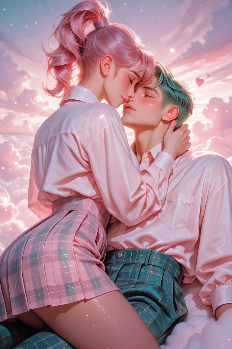 История любви зеленого мальчика и розовой девочки (6 артов)