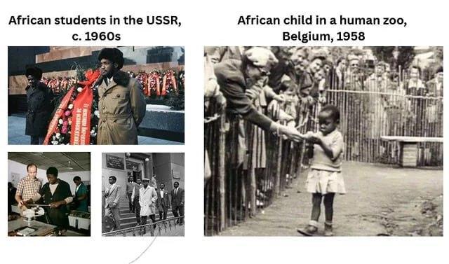 Африканские студенты в СССР и негры в человеко-зоо парке Бельгия то же время...