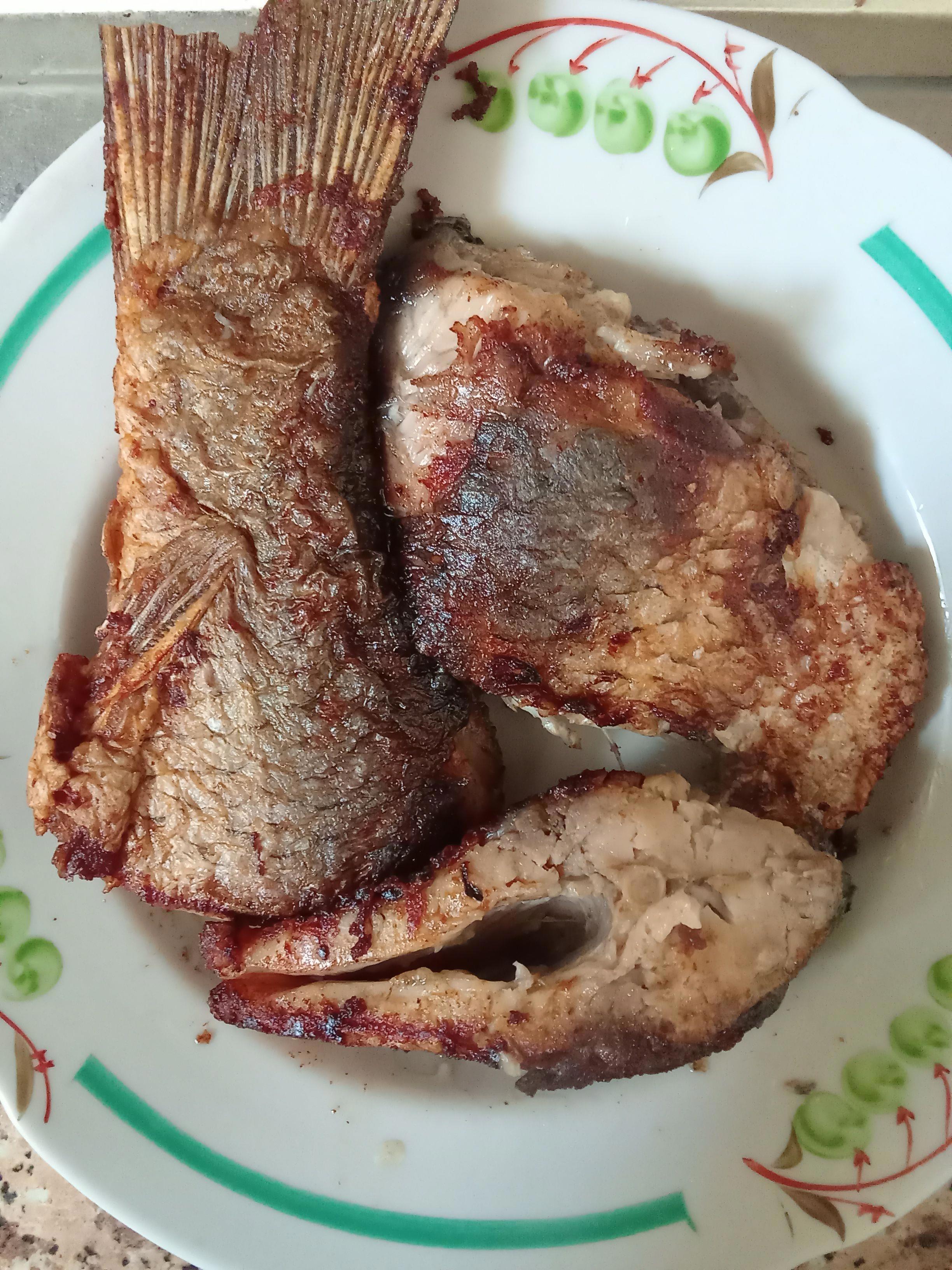 Автор: ВоробейСделал себе маленький праздничный ужин на Хеллоуин: сазан из Куры, пойманный сегодня с портулаком, который тоже засолили сегодня.