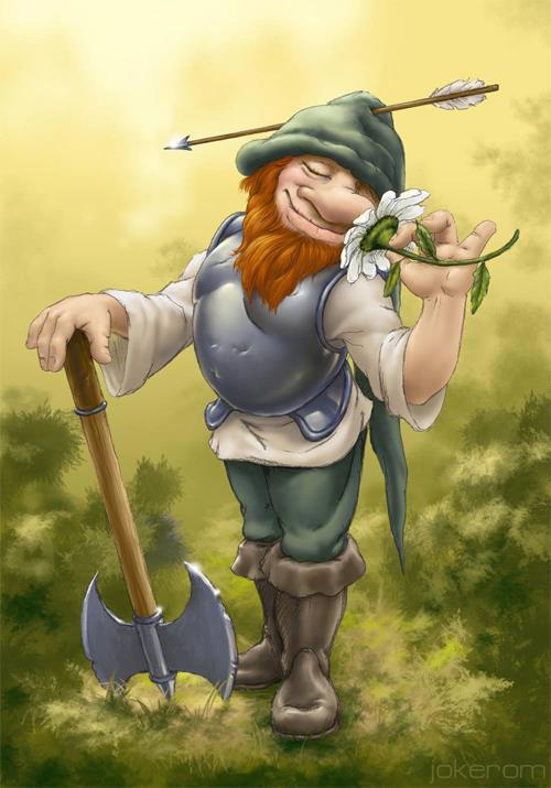 Но самым посещаемым местом была — "Таверна". Там можно было насладиться виртуальной чашечкой ароматного напитка или чего покрепче за приятной беседой с друзьями (мессенджеров тогда никаких не было). Можно было поспорить на тему "Что такое плагиат, а что — использование референсов". А можно было нарваться на провокатора и забияку с последующим вызовом на дуэль... В результате одной из таких творческих дуэлей появился на свет мой "Боевой гном", который всегда предпочитал любой склоке и вражде вдыхать терпкий аромат ромашек. (Победитель дуэли выбирался тайным голосованием)))