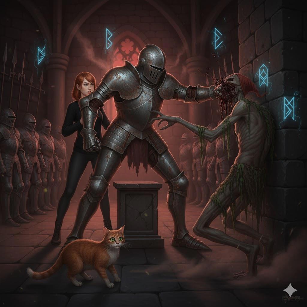 Элис, выглядывая из-за спины своего ожившего предка, смотрела на это с благоговейным ужасом. Доспех не был просто марионеткой. Он двигался. Медленно, со скрежетом и стоном, который, казалось, шел из самой души металла, он сделал шаг. Потом еще один. Он развернулся, и пустые прорези его шлема-салада, казалось, смотрели прямо на нее.