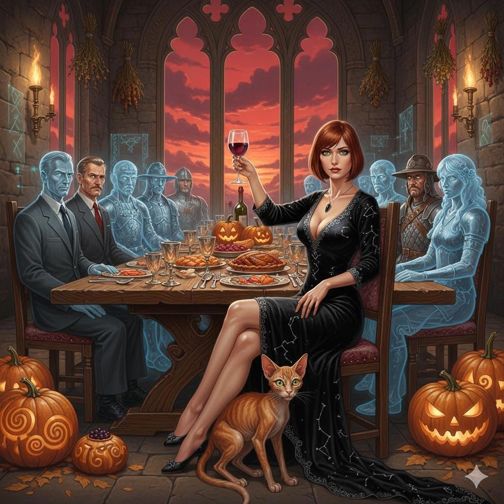 В Англо-Голландской империи Хэллоуин был не просто детским праздником с конфетами и костюмами. Возрождение интереса к языческим корням, подогреваемое аристократической верхушкой исполинской страны, вернул древнему Самайну большую часть его первоначального, сакрального смысла. Это была ночь, когда истончалась завеса между мирами. Ночь почитания предков. Ночь гаданий и костров. Ночь, когда живые и мертвые могли почти коснуться друг друга. Когда выходили на волю создания Изначальной Тьмы. И, конечно, это все еще был веселый, мрачный праздник, полный тыкв, призраков и ведьм.