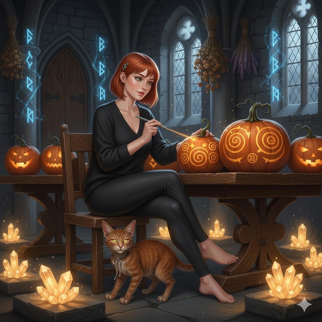 На огромном дубовом столе, которому было больше лет, чем самой Англо-Голландской империи, лежали тыквы. Элис не стала вырезать их ножом. Она взяла тонкий, похожий на стилус, инструмент, и лазерный луч, точный и бесшумный, начал выжигать на оранжевой кожуре не ухмыляющиеся рожицы, а сложные кельтские узлы и спирали, символизирующие вечный цикл жизни и смерти.