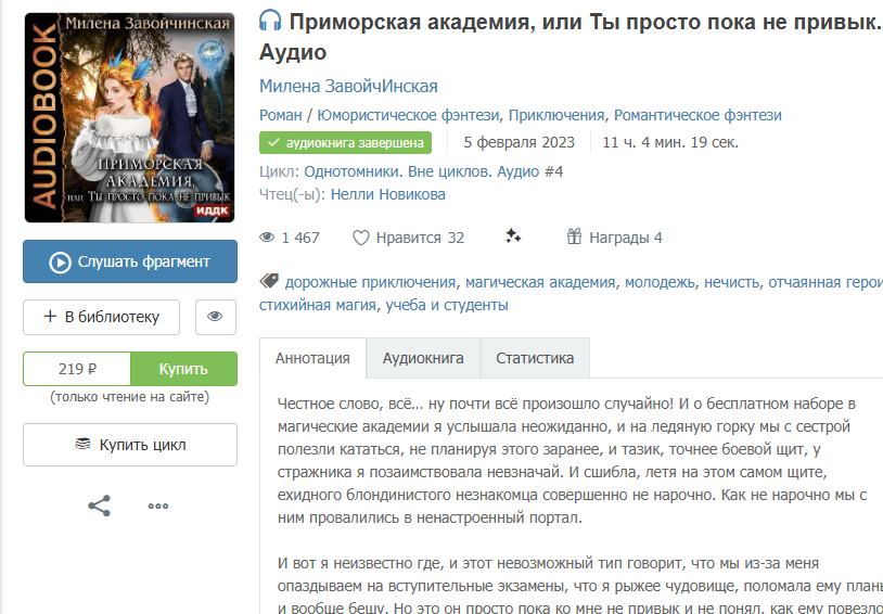 Милена ЗавойчИнская "Приморская академия, или Ты просто пока не привык. Аудио"