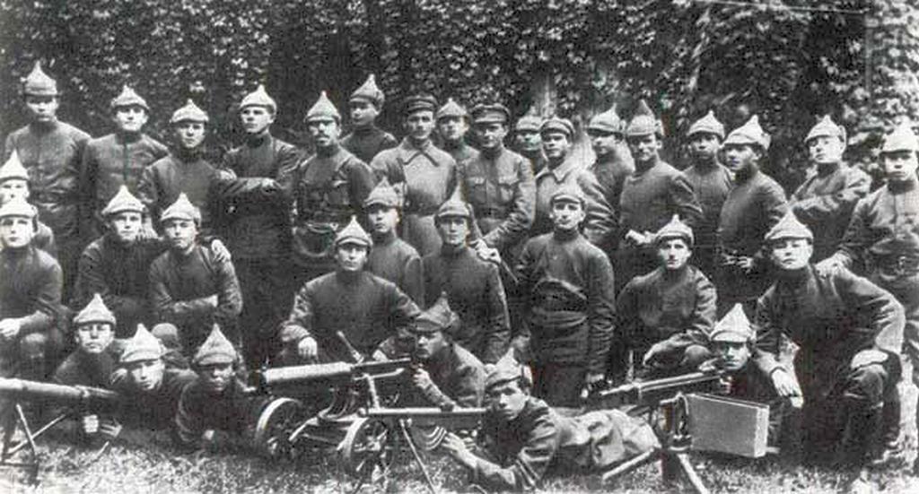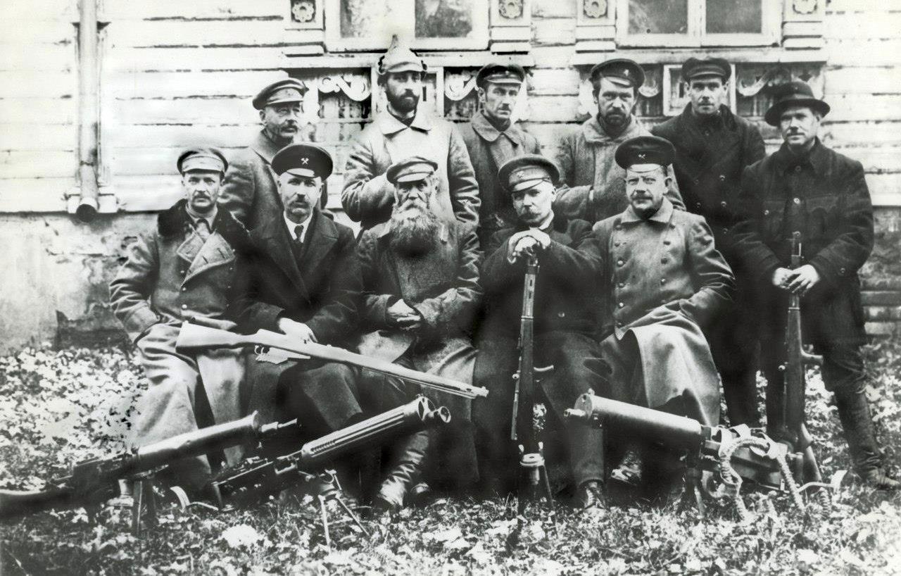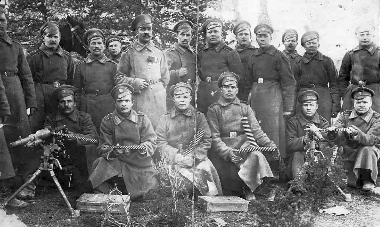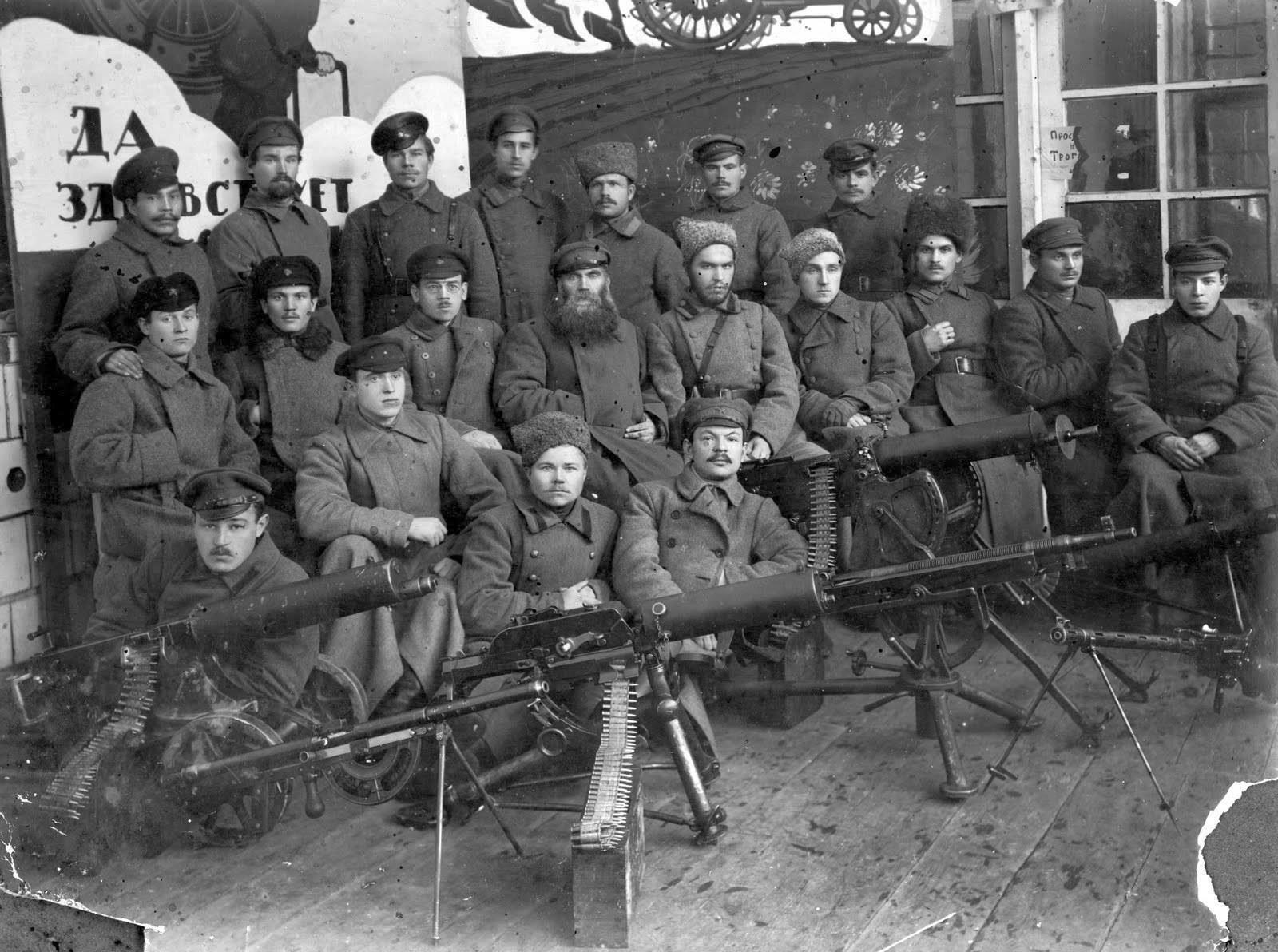 На этом фото с красными командирами (к сожалению, не очень качественном) можно справа налево увидеть пулемёт Кольта Браунинга образца 1895 года, пулемёт Шоша, пулемёт Максима и пулемёт Гочкинса образца 1909 года (кажется). Однако гораздо богаче набор пулемётного вооружения вот на этом отличном фото: