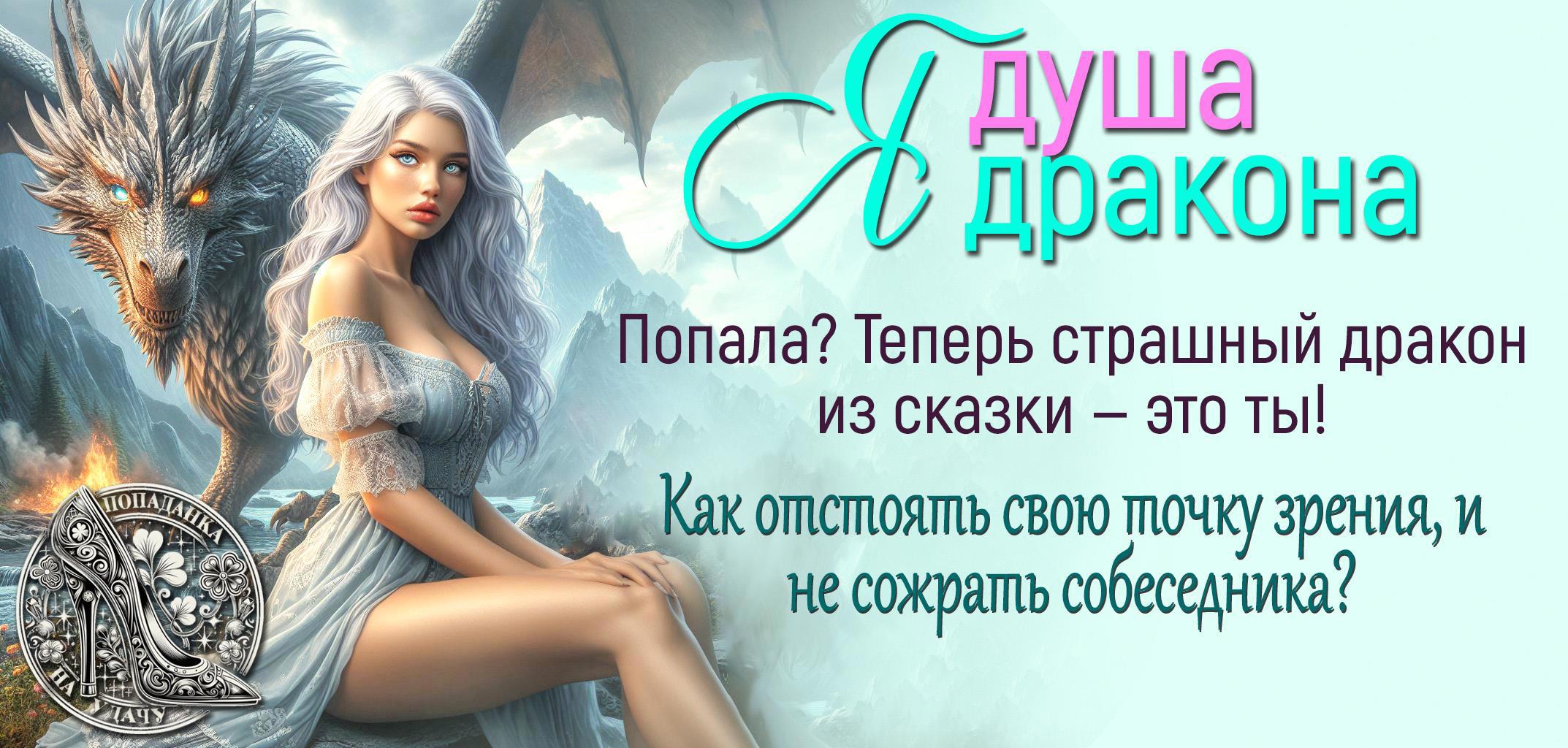 Попала? Теперь страшный дракон из сказки — это ты! Как сменить лапы на ноги и перестать изрыгать огонь? Спросить драконоборца! Он научит драконьим штучкам и поможет обратиться в девушку. Как договориться с соседями и не сжечь чихом деревню? Как выставить из жилища принца, который желает быть похищенным драконом? Как объяснить свою точку зрения, не сожрав собеседника? Куда спрятать рыцарей, которые упали в обморок от твоего рыка? Все это в новом романе "Я — Душа дракона". И не только!
