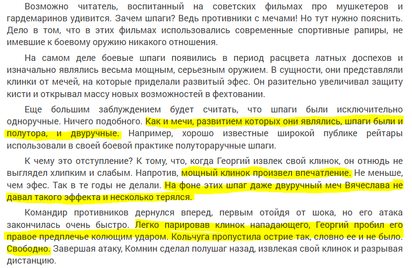 Честно говоря, я б с удовольствием глянул, как Ланцов ширококлинковой рапирой (такое же некоторыми именуемой боевой шпагой) ЛЕГКО, СВОБОДНО И НЕ ЗАМЕТИВ СОПРОТИВЛЕНИЯ пробивает даже херовенькую кольчугу на стегле.