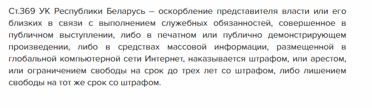 Автор: Волынец ОлегА могут меня посадить по статье 369 УК РБ.