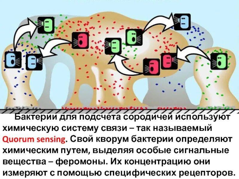 · Когда концентрация бактерий растёт, концентрация этих молекл тоже увеличивается
