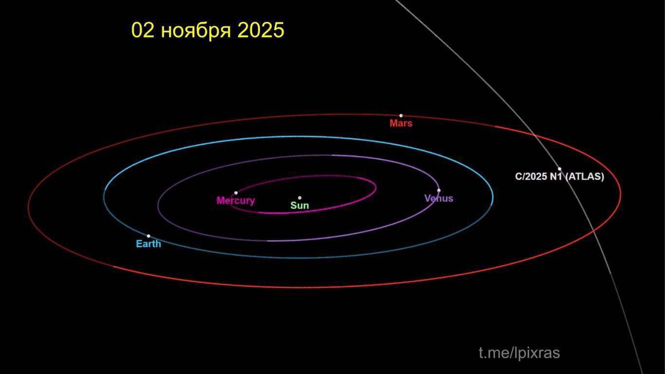 Межпланетный «корабль» 3I/ATLAS достиг внутренней части солнечной системы и послезавтра пройдёт на минимальном расстоянии от Марса