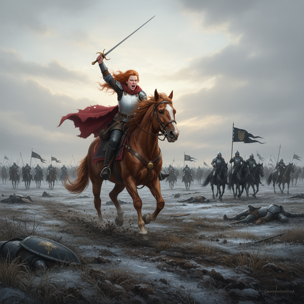 По описанию конной битвы при Дерте удалось добиться такого вот. Не судим сеточки, в залитом куске текста не было описания внешности персонажей.