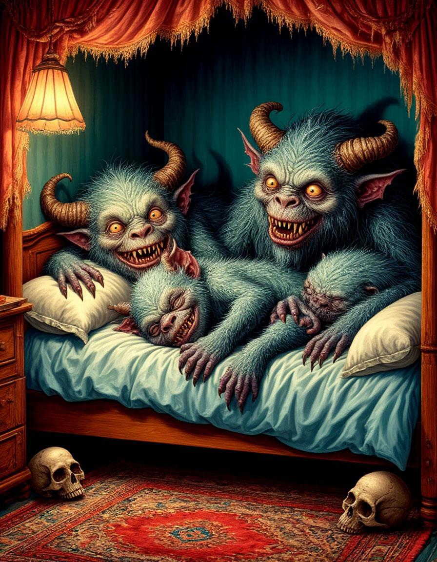 Монстры вылезли из-под кровати и взгромоздились на кровать