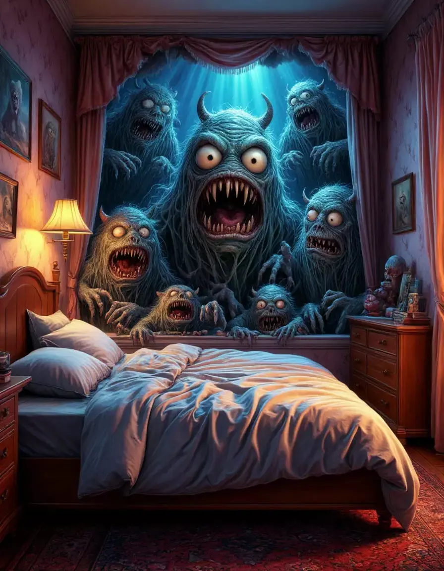 Автор: Михаил Барановский (Воин Космоса)Монстры вылезли из-под кровати и взгромоздились на кровать