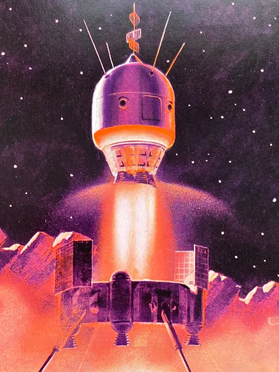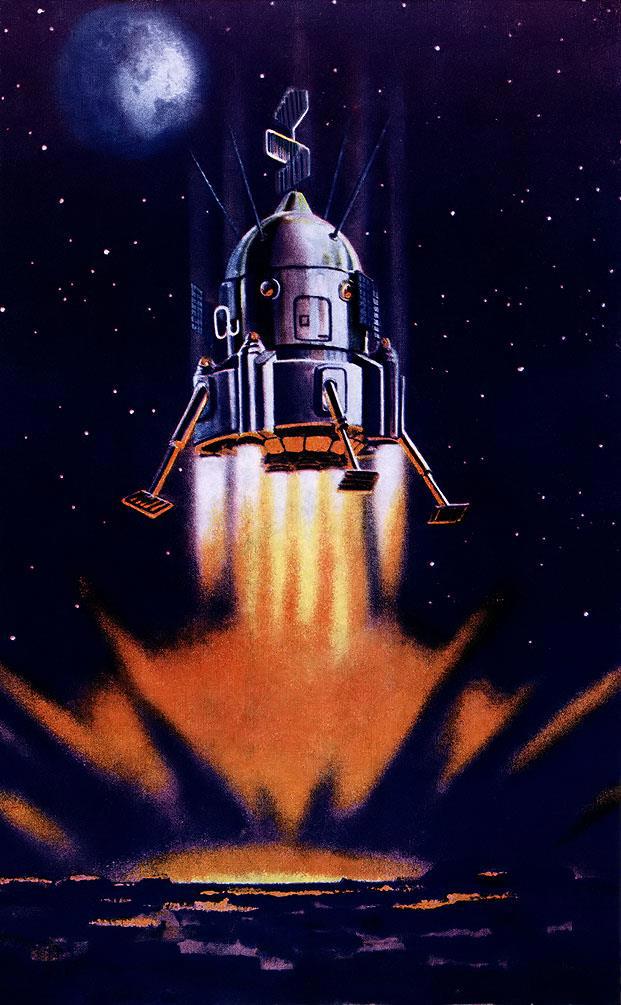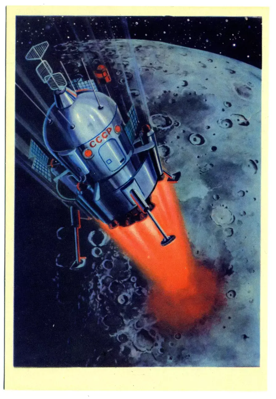 Так что это вполне может быть рисунок по мотивам настоящего космического корабля, как и они рисовали картинки с Аполло задолго до самого полета. Так что разбившийся на Луне русский корабль начал свою жизнь на рисунках двух художников, и потом был творчески переработан в США