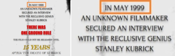 5. Утверждение о том, что жена Кубрика опровергла это интервью покойного мужа, ничем не доказано. Сама жена режиссера не выступала с этим опровержением публично. Представитель жены умершего Кубрика, который якобы выступил от её имени, никому не известен, не знают даже его имени, и имел ли этот никому неизвестный человек, право на такое заявление от имени жены Кубрика.
