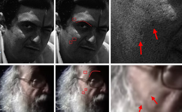 Дефекты кожи на лице молодого Кубрика-вверху, и на лице Кубрика из видео-внизу.